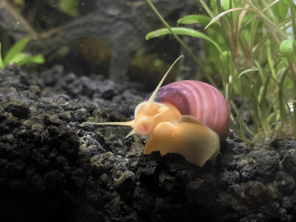 Mystery snails get a little bit larger than their nerite cousins, and they eat a wider variety of foods. They will happily munch on algae and biofilm, but they will also eat leftover fish food, sinking pellets, and dying aquarium plants (but they usually don’t touch healthy ones). These snails are pretty hardy, but keep an eye on their shell health! If the pH is too low or if there isn’t enough calcium in their water or diet, their white, gold, purple, black, or blue shells may become noticeably brittle.